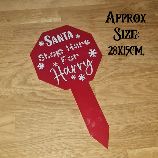 Santa Please Stop Here For Personalised Acrylic Sign with Vinyl Wording - Perfect for inside or outside, great kids Christmas decoration!